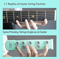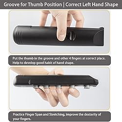 ♫ Same Frets in Length as Real Guitar: Practice finger placement across frets as on real guitar, train fingers stretching, improve dexterity and strength in fingers, hands, forearms. ♫ Unique Position Design: 2 grooves design for thumb position,upper groove is for thumb placement while playing 1st-4th frets; down groove is for thumb placement while playing 2nd-5th frets or 1st-5th frets, develop good left hand playing shape and fingers coordination. ♫ Silicone buttons, built-in spring. Specialized in finger placement and strength exercises, rather than grip strength exercises, better than the traditional finger strength devices for the palm and forearm force release. ♫ Pocket Size and Lightweight: Portable & Mute finger exerciser can be taken anywhere and used anytime-on the train, in traffic, at the office, or whilst watching TV. Practice anywhere anytime. ♫ Great Gift: Ideal learning tool for musicians beginners of guitar, bass, violin, and other string instruments with a fretted fingerboard.