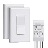 300FT WIRELESS REMOTE RANGE: No wifi needed, our wireless in-wall switch kit has up to 300ft remote range in open areas, powerful RF signals can penetrate walls and doors without any interference. For best results, it is recommended that you measure the distance between the switch and the receiver before installation PROGRAMMABLE AND EXPANDABLE: Allows one switch control a lamp, multi switches control a lamp or one switch control multi lamps. You can add wall light switches to your existing lighting system freely and won't affect the existing system. The receiver includes battery, low power consumption, long service and durability NO WIRING NEEDED: Matching the traditional standard panel design, in line with your traditional switch panel aesthetic, more aesthetic, easy to replace the same configuration of the panel switch (4.68*2.83inch). No need to rewire the house, saving your times and money, and reducing damage to your wall (battery included) NO WIRING NEEDED: Matching the traditional standard panel design, in line with your traditional switch panel aesthetic, more aesthetic, easy to replace the same configuration of the panel switch (4.68*2.83inch). No need to rewire the house, saving your times and money, and reducing damage to your wall (battery included) WIDE APPLICATION: Apply for any lights like incadescent, halogen, fluorescent, CFL, etc. Power output of the device can not exceed 10A / 1200W; 1000W Tungsten/ 600W Fluorescent. You can remotely turn on/off indoor lighting, fans, etc., by pressing a wall switch