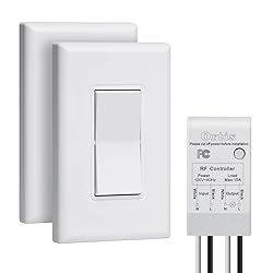 Wireless Light Switch and Receiver Kit, Ortis 300ft RF Range Wireless Wall Switches for Lights, Fans, Battery Included, No Wiring Needed (2 Switches & 1 Receiver Kit)
