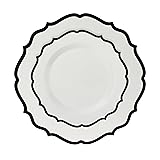 PLASTICPRO 32 Pack Elegant Disposable Plastic Plates Combo Set Includes 16 Dinner Plates and 16 Salad Plate Heavy Duty Fancy Party Plates White & Black Contemporary Design