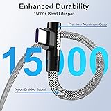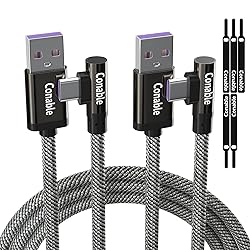 【5A Fast Charging Cable】: A new upgrade to the 5A/3A fast charging cable allows for a faster charging experience. This Cable supports a maximum output of 60W and a USB 2.0 480Mpbs data transmission. Also supports iPhone 15 PD20W Fast Charging. 【Upgraded Right Angle Design】: The 90 degree USB C-cable connector design is more convenient for you to use during charging. You can play games, watch videos, and read e-books more comfortably. 【Quality Control】: Featuring the Oxygen-free copper (OFC) wire, dual color wear-resistant nylon braided jacket, and high-quality aluminum alloy shell. It can withstand up to 15,000 bends, adding extra durability and excellent texture. 【Wide Compatibility】: Charging and data transmission in one. Our USB C fast charging cable can charge all USB-C phones, tablets, and laptops, such as iPhone 15/ 15 Plus /15 Pro /15 Pro Max, Galaxy S23, Note 20 Ultra, Google Pixel 5, Nexus, Huawei, Xiaomi, LG, ThinkPad, Switch, Huawei and more. 【More Convenient】: One cable for all devices with usb type-c port. There is no need to purchase other fast charging cables separately for phones, tablets, and laptops. What You Get : 2 pack USB-A to USB-C Cables and 5 extra cable ties.