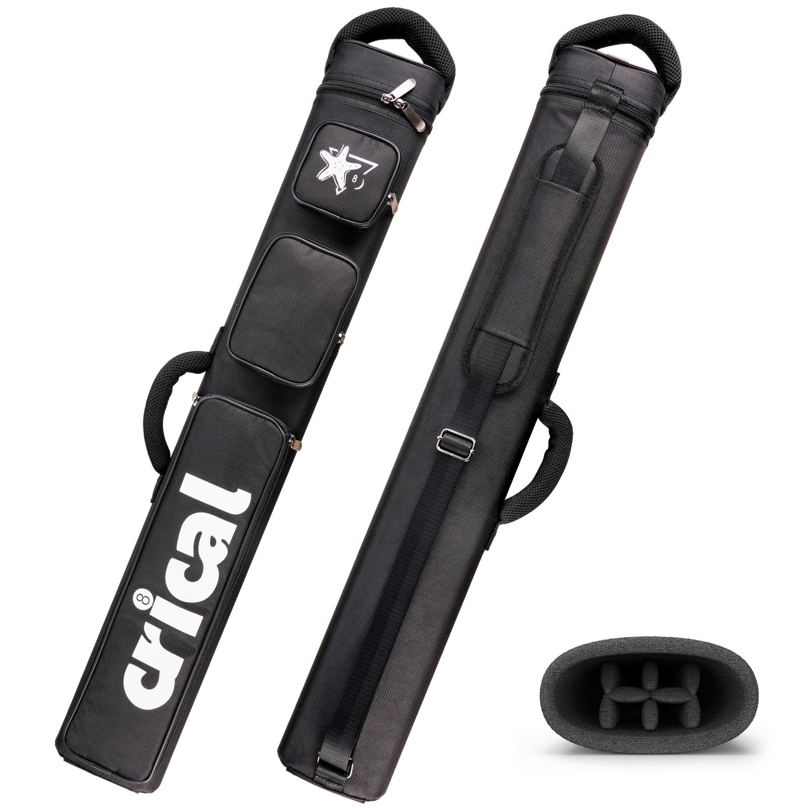 - CRICAL 2x4 pool cue case is lightweight and durable, available in canvas, Oxford cloth, and PU leather. It is equipped with a non-slip base, adjustable shoulder strap, double handles, and a storage bag on the front for chalk, extension, etc. It is easy to carry and effectively protects the cue