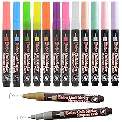 Uchida Bistro Chalk Marker Set - Extra Fine Point - 14 Neon, Pastel, and Metallic Colors - Bistro Chalk Markers for Ultra-Detailed Art on Blackboard, Glass, Windows, Signs, and More