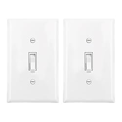 【Specification】Single-Pole Switch: Designed to control a light or fixture from one single location. Perfect for standard room lighting applications like bedrooms, living rooms, and bathrooms. Rated for 15A 120V AC, 60Hz 【Flexible Wiring Options】Features both quick push-in (back-wire) and side-terminal wiring for versatile and straightforward installation. Provides more space for wires within the electrical box 【Durable Construction】Built with impact-resistant polycarbonate thermoplastic and a sturdy solid steel mounting strap for long-term reliability and a secure installation 【Versatile Application】A residential and commercial grade switch suitable for most areas requiring a 15 Amp rating. Features a UL94 V-2 flammability rating for added safety 【Package Contents】This listing is for a 2-Pack of single-pole toggle light switches and wall plate, offering great value for multiple installations or keeping spares on hand