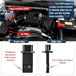 Perfect Fit : Copy OE design, have OE quality, perfect fit Durable Material : Our MAF sensor is made of high-quality materials, strong and durable, no need to replace frequently, saving money Reduced Engine Wear and Tear : Using our products you can maintaining the correct air-fuel ratio minimizes the risk of conditions like lean or rich fuel mixtures, which can lead to premature wear and damage to engine components Reduce Fuel Consumption : Using a mass air flow sensor, by accurately measuring the amount of air entering the engine, the engine control unit module can adjust the fuel injection rate accordingly, which can improve fuel efficiency and reduce fuel consumption and costs Application :