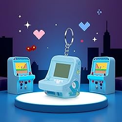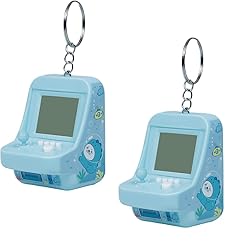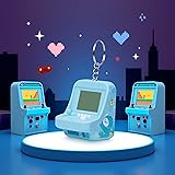 1 Pair Blue Micro Player Mini Arcade Machine with Keychain, 26 Classic Game Modes Support Music Mini Building Block Game Console Children Plug and Play Video Games for Automotive Trim