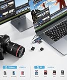 【USB 3.0 + USB C】Both interfaces support high-speed data transfer up to 5 Gbps. Compatible with SDXC, SDHC, SD, MMC, RS-MMC, Micro SDXC, Micro SD and Micro SDHC cards. Backwards compatible with USB 2.0 and USB 1.1. * Memory cards shown in images are not included in the product. 【Double duty】 Simultaneously reading and writing on two cards to save the constant plugging and pulling of plugs. Enjoy fast photo downloads, smooth video editing and fast file transfers. Double your productivity with simultaneous microSD/SD card access. View recordings of your security cameras, wildlife monitors, private surveillance cameras and car monitors instead of bringing them home to you 【Plug and Play】Designed to not block your other ports. Its slim profile makes it easy to store in your camera bag or backpack and provides convenient access to micro/SD cards when needed. No drivers are required for Windows 10/8/7/Vista or Mac OS X 10.2 and later. No additional power supply required. 【Wide Compatibility】Compatible with MacBook Pro (2021~2016), MacBook (2019~2015), iMac Pro (iMac), Acer Aspire Switch 12 S/R13, Predator 15/17X, XPS 13, 15, Alienware 13/15/17, Spectre x360, Microsoft Surface Pro, Book 2, Razer Blade 15/Stealth 13/Pro 17, Samsung Galaxy Tab Pro, S21, S20, S20 Plus, S20 Ultra and most other USB-C / A devices.(Currently doesn't support iPad Pro 2020). 【WHAT YOU GET】uni high speed Memory Card Reader with 24/7 customer service and hassle-free 18-month warranty. Please rest assured we stand behind our products and customers.