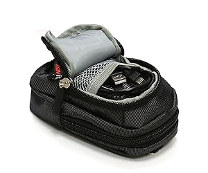 Shock absorbing & water resistant Pockets for accessories and cables Padded nylon interior Shoulder strap included Belt loop and Carabiner clip