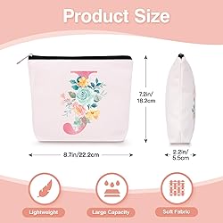 Personalized Gifts: This product includes one initial cute makeup bag and one resin letter keychain, which is a perfect gift choice to surprise your wife, bridesmaid, teachers, mother, sisters or friends on Wedding, Christmas, Engagement, Birthday, Valentine's Day, Thanksgiving Day, Mother’s Day, Proposal, etc Premium Material: This A to Z letter cosmetic bag is made of premium canvas, which is soft, sturdy and durable. With our two-layer design, the silk-feeling waterproof lining can prevent the internal stuff from getting wet. The zipper is sturdy and smooth, which can keep your beauty products safe. The printing is high-quality and not easy to fade Portable but Large Capacity: The size is 8.7x7.2x2.2 inch and the weight is only 1.9 oz, so it is portable but provides plenty of space to store your cosmetics and makeup tools, such as makeup brushes, lipstick, makeup, wipes, toiletries, mascara, perfume, chic accessories, mini hair brushes, skin care products, nail polish, etc Widely Used Keychain: The initial letter keychain is made of epoxy resin material and comes with a beautiful resin butterfly and tassel. This is not just a shining keychain, but it is also a perfect decoration for your makeup bag, tote bag, cell phone, wallet and different style outfits, etc Multifunctional Bag: Our cosmetics organizer is multifunctional and elegant. It is not only a makeup pouch but can also be used to store your snack, glasses, cell phone, markers, electronics accessories. It is suitable for various occasions like travel, business, wedding, shower, etc