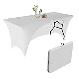 Urby Elastic Open Back Table Clothes for 6 Foot Rectangle Tables Fits 6ft Folding Tables from Lifetime, COSCO, Mainstays and Others. Heavy-Duty Stretchy Wrinkle Resistant Spandex. White.