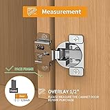 Installation Specification: Cup diameter is 35mm; Cup depth is 11.5mm, Screw holes distance is 45mm; Opening angle is 105 degrees, suitable for most cabinet door styles. Each slow close cabinet hinge comes with 2 easy-on dowels and 3 self-tapping wooden screws to ensure a perfect fit. SOFT CLOSE CABINET HINGE: Each overlay concealed cabinet hinge includes a built-in POM damper, Reduced closing speed prevents noises from the kitchen and prolongs the life of doors, cabinets, and hinges. In addition, it also supports ★SMALL SOFT CLOSE ANGLE★, which can better protect your finger. 3 Ways Adjustable Upgrade: Superior 3D adjustability allows you to adjust the cabinet door up and down, left and right, back and forth just by turning a screwdriver, this will ensure that your bathroom and kitchen cabinet doors do not sag, and align correctly, open and close smoothly. Double Electroplated: The material of our overlay cabinet hinges is high quality steel and nickel plated finish and brass plated bottom, durable and perfect for kitchen cabinet doors, wardrobes, and TV cabinets, bookcases, wine cabinets, and other luxury door connections. Buy with Confidence: Chibery hinges Conform to the standards and certifications of ISO9001, ISO14001, BHMA, KCMA, and SGS. The product can withstand more than 100,000 times of opening and closing and more than 48 hours of salt spray test. If you encounter any problems during use, feel welcome to connect with us at any time. We will provide the most attentive service.