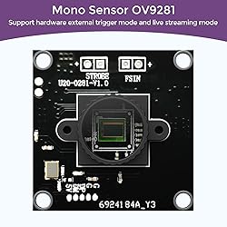 【High-Speed Global Shutter Camera】Equipped with 1MP OV9281 mono sensor and global shutter technology, delivers 720p at 120fps. Captures crisp, distortion-free images of fast-moving objects, ideal for machine vision and industrial applications. 【Universal UVC USB2.0 & USB3.0 Support】Plug-and-play UVC camera module with built-in driver. Compatible with both USB2.0 and USB3.0 interfaces, supporting Windows, Linux, Mac OS, Android, Raspberry Pi, and Jetson Nano. 【External Trigger & Strobe Function】Features hardware external trigger mode and strobe output pins for precise capture control and perfect synchronization with external lighting. 【Easy Connection with 2.0mm Headers】Simplifies external circuit connections. Accessible trigger and strobe pins enable quick prototyping and integration for developers. 【Wide 148° M12 Lens】Fixed-focus M12 lens provides 148-degree field of view, ensuring broad coverage for surveillance, robotics, and computer vision applications.