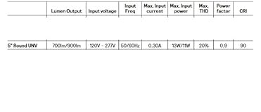 Field selectable color (CCT) (2700K, 3000K, 3500K, 4000K, 5000K) Field selectable lumens (900lm/1100lm) 13 watt or 11 watt depending on lumen selected 0-10V Dimming 90 CRI