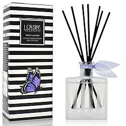 - LOVSPA French Lavender Reed Diffuser Refill, 4 oz, Bundle with French Lavender Reed Diffuser Set – Strong and calming, lavender is combined with just a subtle note of immortelle, geranium and sandalwood. Like fresh, peaceful lavender, swaying in the breeze.LOVSPA Luxury Reed Diffusers give any space a luxurious ambiance with delectable scents that freshen up your home. Featuring a sleek, stylish glass bottle that boasts an individual design with a classic shape & a modern stripe etching to complement any decor interior. Gorgeous packaging is the perfect complement to our beautiful bottles filled with real spices, fruit and botanicals. Concentrated and highly effective, our diffusers do not contain alcohol. Each set comes with concentrated fragrance & a set of diffuser reeds. Reed diffusers will emit long-lasting fragrance; much longer than a candle and, with no flames, they are more practical. Paraben, sulfate, phthalate and phosphate free. Vegan. Never tested on animals. LOVSPA Fragrances Reed Diffusers are beautifully gift boxed, making them a perfect gift idea for any occasion; Great for a Birthday or Christmas. The elegant LOVSPA Fragrances Collection of Reed Diffusers will transform your home into a fragrant spa retreat. Using the science of aromatherapy, our scents are expertly blended to soothe, uplift or restore. Stunningly styled, pleasing to the eye and with fabulous fragrances to choose from, there is no doubt that our creations make a positive addition to any home. We at LOVSPA Fragrances understand that home fragrance is a very personal choice with an enormous power to enhance the home and we thank you for your support of our small business. Be sure to check out our Storefront for more revolutionary home fragrance and spa products! LOVSPA Fragrances Give any space a luxurious ambiance and love the air you breathe.
