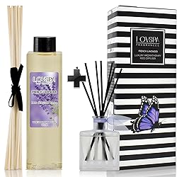 ⭐ LOVSPA French Lavender Reed Diffuser & Refill BUNDLE DISCOUNT! Go DIY with our refillable glass bottle. This pack includes a Reed Diffuser Set, a 4-ounce Diffuser Oil Refill & extra replacement Reed Sticks. Our diffuser oil, expertly crafted for lasting aroma, guarantees steady fragrance in your space. The glass bottle marries elegance & sustainability. With the bonus reeds, achieve uninterrupted scent diffusion – seize this value-packed offer! ⭐ FRENCH LAVENDER: Strong & Calming, Lavender & subtle note of Immortelle, Geranium & Sandalwood. The reeds absorb the aromatic oil and gently diffuse the aroma throughout your home ⭐ PREMIUM REED DIFFUSER SETS MADE WITH ESSENTIAL OILS: This stick diffuser is ideal for the bathroom, creating a relaxing environment. It's an effective room diffuser that provides a warm and welcoming ambiance. LOVSPA Fragrances diffusers fill any room with long-lasting scent – modern air fresheners that double as home or office decor. Beautifully designed to complement any home decor style. Place in the bathroom, kitchen, living room, dining room, or foyer. ⭐ SAFE, FLAMELESS AROMA: The refillable glass bottles provide continuous fragrance without the need for heat, making them a more practical alternative to candles, warmers, & wax. Plus, our bundle deal includes both a reed diffuser set and a diffuser refill oil. Keep your home fragrant with a consistent, long lasting aroma & enjoy the therapeutic benefits of aromatherapy. Additionally, our reed diffusers are eco-friendly, promoting sustainability while enhancing your home ambiance. 🎁 EVERYONE'S PERFECT PRESENT: Seeking the ideal kitchen décor? This air scent diffuser is a standout luxury home decor piece. Beyond being an air freshener, it's a top pick among bathroom essentials. Elevate your coffee table & shelf decor aesthetic. It's an impeccable home gift idea for everyone: mom, dad, family, friends, teachers, women, men, co-workers, bosses, employees, & clients. Perfect housewarming gifts for new home couples. Our air scent infuser scents make a home everyone adores.