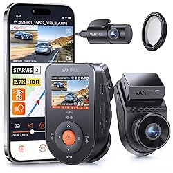 【2.7K+1080P Front and Rear Recording】The S1 PRO dual dash cam upgraded to the advanced Novatek Chip and simultaneously records your car front and back at 1944P+1080P@30fps, providing clear images of critical details like license plates and street signs while driving; The 160° field of wide view that helps cover multiple lanes without image stretches. Besides, the optional CPL filters(Asin: B0B2VMYQBL) reduce glare and reflections, giving you the best visual experience. 【Infrared Night Vision】The 2-channel dash cam interior facing camera with 4 infrared LED lights, which can accurately capture the driver and passengers in low light. Equipped with WDR /HDR and upgraded STARVIS technology in the front camera, the dash camera will automatically balance the light and dark areas and capture clear videos and image footage even in poor lighting conditions at night. Extremely suitable for Taxis, Uber, Lyft, rideshare, and families. 【Discreet Design & Easy Installation】​The 2-way car camera has a compact and hidden design and allows it to behind your rearview mirror easily without obstructing your view and less attention-seeking to thieves. The front camera provides up&down and left&right nearly 36° of smooth rotation, which adapts better in different car models for optimal positioning. The detachable 3M adhesive mount allows for easy transfers between vehicles or removal and avoids damaging your car glass. 【Built-in 5G WiFi and GPS with Free APP】With the Free "Vantrue" App(available for both iOS and Android), you can easily operate the live preview, customize settings, playback, OTA firmware, download, and share the road view on social media directly from your smartphone. The included GPS module accurately records your driving route, location, speed, and time in real-time, and allows you to check the exact GPS information on Google Maps via Free Vantrue Player and APP. You don't need to subscribe. 【Hands-Free Voice Control& Emergency Button】 The dashboard camera's multiple basic voice commands(only available in English, Japanese, Russian, and Chinese) can achieved hands-free to start and save video, take photos, start the video, and turn on/off audio/ WiFi/screen while driving. The optional emergency button (Asin: B0C9JCVSGD) lets you easily capture beautiful scenery and lock emergency videos within your reach. They greatly improve the convenience of using the cam, making driving safe.