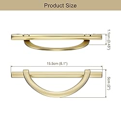 - Advantage: The cabinet drawers handles are made of aluminum alloy and have good rust and corrosion resistance. The surface adopts an electroplating process and is not easy to fade, improve your home with their simple elegance. Edge design, no-sharp and rounded edges, soft touch. Half-moon design for easy operation and comfortable grip. Each handle has matching long screws and short screws. Make sure to fit cabinets of different thicknesses. This cabinet handle is suitable for cabinet, closet, cupboard, drawer, dresser, door, wardrobe. Specification: Material: Aluminum alloy Color: Gold Size: 15.5 cm x 1.1 cm x 5 cm/6.1"L x 0.45"W x 2"H Package Included: 6 pcs x Kitchen Cabinet Handles Note: Manual measurement, please allow slight errors in size. The color may have a slight difference due to different screen displays.