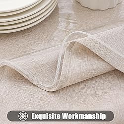 [High-Quality & Resuable] Crafted from premium vinyl material and reinforced for durability, our table cloth provides long-lasting protection against scratches. Whether hosting a lively indoor gathering or enjoying a sunny outdoor picnic, this tablecloth effortlessly combines style with practicality. [Waterproof & Spillproof] Our plastic table cover provides effective waterproofing, protecting your table from potential damage due to water, oil, milk, and other stains. Crafted from thick PVC material, it effectively keeps liquids at surface, making cleanup a breeze. [Easy Wipe Clean] The waterproof design of our clear tablecloth enhances your daily life, making cleanup a breeze with just a damp cloth or paper towel. This effortless stain removal process leaves your tablecloth looking fresh and revitalized, ready to brighten up any space. [Exquisite Workmanship] The meticulously crafted edge stitching of our vinyl tablecloths add an elegant touch to your space, infusing it with a sense of refinement. With its exquisite craftsmanship, it brings a hint of upscale luxury to your dining environment, elevating the overall dining experience. [Elegant & Versatile] With its timeless transparent design, our tablecloths effortlessly blend into any setting, making it versatile and suitable for indoor and outdoor settings, weddings, parties, picnics, meals, and gatherings.