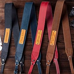 PERSONALIZED DESIGN: Our high quality leather camera neck straps can be laser engraved with your name, initials, monogram or any text you like to add a personal touch to your camera gear. MULTI-COLOR OPTIONS: This leather shoulder strap is available in 4 different colors (black, brown, reddish brown, navy blue), each color is classic and fashionable, making your camera look more retro, the strap is adjustable And soft, lightweight, non-slip and durable. PREMIUM MATERIAL: Personalized soft leather camera strap is made of full-grain leather. This leather is stylish and durable. At the same time, it can relieve the pressure and tension from the weight of the camera on your shoulders or neck, allowing you to enjoy taking pictures. ADJUSTABLE: Our professional photographer gifts connects to all DSLR cameras with a universal hook and loop design, making it easy to install and adjust. Its length is adjustable to 50 inches/120 cm (down to 39.8 inches/101 cm), width: 1.5 inches/4 cm, and is compatible with most DSLR cameras. GREAT GIFT: The adjustable leather camera strap is the perfect gift idea for any occasion, beautiful and functional, perfect for professional photographers and photography enthusiasts.