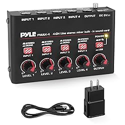 Pyle 4-Channel Bluetooth Mini Line Mixer with USB Audio Interface - 4 Mono/Stereo Switching Inputs | Ultra-low Noise Design with High Headroom | Built-in USB-C Sound Card - PMAX4