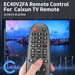 - EC40V2FA Replace Remote Control Compatible with Caixun Android TV EC32V2HA Item Description No need setup, just insert new alkaline batteries to work well!Power Supply: 2X 1.5V AAA Alkaline Battery Please note: do not have Voice function!!! Model: ES32S1N Compatible with Caixun TV models:EC40V2FA EC32V2HA EC40V2FA Compatible with Caixun TV Remote, This is the exact replacement remote Compatible with Caixun EC32V2HA TV. Package Content:1 x EC40V2FA Remote Control(Batteries and User Manual Not Included) Contact Us: Any question, please do not hesitate to contact us before leaving feedback and before return, we promise will resolve it for you.