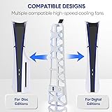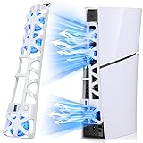 - Cooling Fan for PS5 Slim with LED Light-Klipdasse USB 3.0 Hub Quiet Fan for PS5 Slim-3 Speeds Compatible with Playstation 5 Disc & Digital-White Keep your PS5 Slim running smoothly and cool with Cooling Fan for PS5 Slim. Designed with an adjustable silent fan and three speed levels, this cooling fan operates at a quiet level of less than 35dB, ensuring your console stays cool without disturbing your gaming experience. The fan speeds can be set to 3500, 4000, or 4500 RPM, providing optimal cooling performance. The cool blue LED lights add a stylish touch to your gaming setup, enhancing the ambiance of your gaming experience. With the smart memory start-stop function, the fan automatically turns on and off with your console, remembering your last fan setting. This ensures convenience and allows you to easily maintain your preferred cooling level without constant adjustments. The high-speed USB 3.0 hub interface supports fast data transfer rates of up to 5Gbps, allowing you to connect and power other devices while you play. This makes our cooling fan a versatile accessory that enhances your gaming experience and provides added convenience. Compatible with various console models, including PS5 Digital Edition, Disc Edition, and the PS5 Slim Digital and Disc Editions, our cooling fan is a must-have accessory for any PS5 console owner. Keep your console cool and performing optimally with our Cooling Fan for PS5 Slim Accessories.