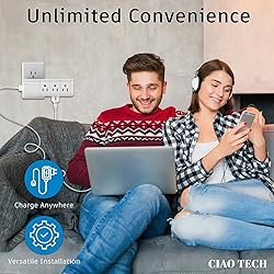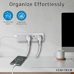 - Introducing the CIAO Tech Travel Outlet Extender – a versatile and essential charging solution designed for modern connectivity demands. This multi-functional device combines convenience, safety, and style to enhance your charging experience at home, in the office or in the travel with 9 outlets and 2 Usb Ports, this multi-plug outlet extender caters to diverse charging needs, allowing you to power multiple devices simultaneously. The 540 Joules Surge Protector embedded in the device ensures that your valuable electronics are shielded from unexpected power surges, providing a reliable and secure charging environment. Its sleek white design not only adds a touch of sophistication to your space but also serves as a multipurpose USB outlet for travel, home, and office use. The compact and portable build makes it a perfect travel companion, transforming any outlet into a multi-plug wall outlet. As an outlet splitter, this device effortlessly converts a single outlet into a hub for charging various devices. The USB outlets offer versatile compatibility, accommodating different charging cables and devices, including those with USB-A. Say goodbye to the inconvenience of searching for adapters or searching for additional outlets. The outlet extender surge protector feature ensures that your devices are safeguarded, providing peace of mind during power fluctuations. This multi plug outlet extender is more than just a USB wall outlet; it is a comprehensive charging solution that optimizes your charging space. Upgrade your charging setup with this efficient and reliable CIAO Tech Travel Outlet Extender. It not only declutters your space but also ensures that your devices stay powered wherever life takes you. Transform any outlet into a multi-functional charging hub with this multi plug outlet extender – a must-have for the modern, connected lifestyle.