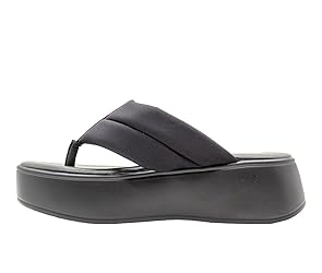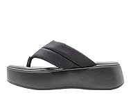Neoprene puffy textile upper Padded insole 2.25” Platform wedge Slip-on thong wedge style