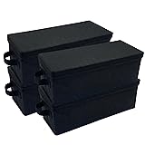 Evelots CD Storage Boxes (4 Pack) Durable CD Case Organizer with Lid, Disc Container Set Holds up to 128 Discs, Black
