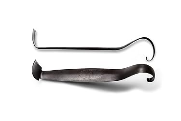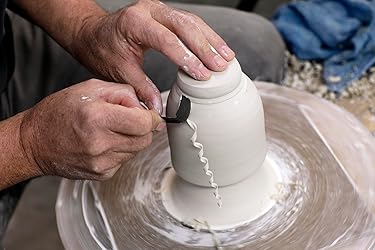 The sharpened, more familiar kanna spade shape provides an excellent, precise cutting edge, especially for working details around the foot of tea bowls, bowls and plates. The curl end, provides a combination of all of Michael's favorite loop tool shapes: it includes both a broad surface for smoothing and a tight shape for detail trimming. We hope you enjoy discovering all the possibilities that this tool can provide.