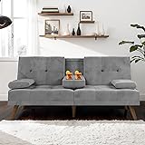 JAMFLY Futon Couch Sofa Bed Convertible, Small Sleeper Sofa Chair Loveseat with Cup Holder for Small Spaces, Living Room, Bedroom, Gameroom, Apartment, Dorm (Light Gray)