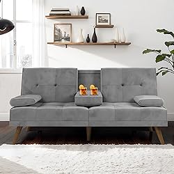 Folding Futon Sofa Bed: With velvet and solid wood legs, this convertible folding futon sofa bed blends comfort and style that will last in your living space for years to come. The sofa bed has two removable cushions that can be used as pillows or cushions Adjustable Backrest: Folding futon sofa bed backrest can be adjusted in the range of 120°, 160° and 180°, different angles to suit different needs, in any situation you can simply adjust the angle for comfort Thoughtful Design: This folding futon sofa bed is perfect for entertaining. The center armrest folds down and has two cup holders for chatting with friends on the futon sofa and enjoying a few drinks Sleeper Couch for Small Spaces: Small loveseat sleeper sofa is suitable for any interior decoration such as living rooms, apartments, offices, university dorms and small places. Please confirm that the product size meets your requirements before purchasing Easy Assembly and After-Sale: This folding futon sofa bed can be easily assembled with detailed illustrations.If there are any questions about the product, please feel free to contact us, we will respond to you in 24 hours.CONTACT US: Login to your amazon account > choose "Your orders"> find the order ID > click "Contact seller"