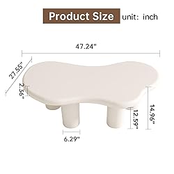 - Enhance the aesthetic appeal of your living room with our cream white coffee table. Designed to be a focal point in any space, its irregular shape sets it apart from traditional rectangular tables. The creamy white color complements various interior styles, making it a versatile piece of furniture. Not only is this coffee table visually appealing, but it also excels in functionality. The three sturdy legs provide exceptional stability, ensuring that the table remains steady even during lively conversations or gatherings. You can trust its quality craftsmanship to withstand daily use for years to come. The 47.24-inch length offers plenty of surface area, allowing you to showcase your favorite decor pieces or serve refreshments effortlessly. Whether you use it as a centerpiece or as an accent piece, this coffee table will elevate the overall ambiance of your living space. Assembly is a breeze with our easy-to-follow instructions. Within minutes, you'll have your new coffee table ready to impress your guests. Cleaning is equally effortless, thanks to the smooth and easy-to-maintain surface. Upgrade your living room with our cream white coffee table today and experience the perfect blend of style, functionality, and durability. Elevate your interior design while enjoying the convenience this table brings to your everyday life.