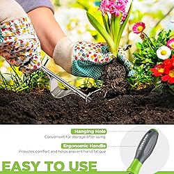 Effortlessly Eliminate Weeds: With our weed puller tool, you can easily remove weeds by simply resting the curved metal base on the ground and digging around the roots to pull them out. The V-shaped forks tip allows you to dig and pry the roots, stem, and leaves, saving time and effort Robust and Sturdy: Made of high hardness polished stainless steel, the weed puller is extremely resistant to rust and corrosion, ensuring longevity and reliability. And which won't bend or break during use, quickly meet any challenges in gardening. The one-piece metal shaft leverages against the ground, making it easy to tackle dandelions, thistles, and other weeds while leaving surrounding plants intact Ergonomic Soft-Grip Handle: Non-slip and comfortable plastic handle is gentle on hands and improves control while reducing hand and wrist fatigue, which is a good helper for gardening and weeding Convenient Size to Storage: Our lightweight garden hand weeder tool is 12 inches in length and light in weight (6.3 oz), and the practical handle hanging hole design and lanyard allows for convenient storage after use Great for Gardening Work: WORKPRO Crack weeder Tool is perfect for removing grass and weeds from narrow spaces like sidewalk cracks with precise accuracy. Designed for both gardeners and first-time users. It is a practical gift for gardeners or gardening enthusiasts