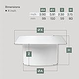 COMPATIBLE WITH 4 INCH DUCTING: INSERTION DIAMETER of the diffuser is 3.90" inch. Outer valve cover diameter: 5.91" inches. Mount collar insertion depth: 2.32" inches. SCREWS AND MOUNTING HARDWARE NOT INCLUDED. DURABLE MATERIAL: Manufactured from sturdy and durable plastic in a white finish with temperature resistance from -4°F up to 158°F, this universal air diffuser is versatile and suitable for various settings, including residential, commercial, educational, industrial, and recreational spaces. PRECISE CLIMATE CONTROL: Universal diffusers distribute conditioned air for consistent temperature and circulation, while removing stale air based on system settings. The adjustable rotating valve provides precise airflow control for comfort. Foam insulation under the cover minimizes noise and vibrations. INSTALLATION & USE: The wall vent diffuser is suitable for installation on ceilings or walls in any position. Before the adjustable air vent installation, ensure that you clean your duct using a damp cloth to remove any debris and dust. Insert the flange into the duct and secure it with sealants, screws or clamp if necessary. Diffuser cover plate can be removed after installation for convenient cleaning access. IDEAL FOR HOME IMPROVEMENT: Air vents for home and office improvement - kitchen, bathroom, attic, garage, shed and anywhere else. Ideal as an ac vent, duct vent, closable vent. Can be used in a mobile home, RV and camper as well. Universal register vent cover for exhaust and air intake purposes.