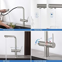 SOLID BRASS CONSTRUCTION: This faucet is constructed with solid brass, known for its durability and resilience. The solid brass composition makes the faucet highly resistant to rust, corrosion, and tarnish, ensuring it maintains its attractive appearance and performance over time | HIGH ARC Faucet Spout: This fixture offers ample height, making it effortless to fill tall glassware, pitchers, and other containers. The increased clearance under the spout ensures easy access and maneuverability. LEAD-FREE APPROVED: Safety is paramount, and this faucet is LEAD-FREE approved, providing peace of mind and assurance of safe and healthy water usage. With lead being a harmful substance, especially when ingested, the absence of lead in the faucet's construction ensures the purity and safety of the water flowing through it, making it suitable for home and commercial use. SEDAL CERAMIC CARTRIDGE: The faucet is equipped with a SEDAL CERAMIC CARTRIDGE, which is known for its reliability and performance. This high-quality cartridge ensures a long-lasting and leak-free operation, preventing common faucet issues and reducing maintenance requirements. Its smooth and precise control allows for effortless adjustment of water flow, enhancing the overall user experience. SWIVEL SPOUT: The faucet's 360 degree SWIVEL SPOUT provides outstanding flexibility, allowing for full rotation in and around the sink. This feature adds convenience to various kitchen tasks, such as filling pots, cleaning the sink, or reaching multiple sink compartments with ease. This innovative design allows the faucet handle to rotate forward, requiring less space behind the faucet for operation and ensuring compatibility with various sink configurations. Compatibility with Filtration Systems: The faucet is compatible with most under-counter reverse osmosis and simple filtration systems (not included). This versatility allows users to connect the faucet to their preferred filtration system, providing access to purified water for various kitchen needs | Optimized Height: The faucet is designed with an optimized height that fits seamlessly into any kitchen size or design. 24″ PRE-ASSEMBLED EPDM SUPPLY LINES – 3/8″ FITTINGS: Includes high-quality, 24-inch EPDM rubber waterlines—pre-installed for fast, hassle-free setup. Designed with standard 3/8″ compression threads fittings to ensure secure, leak-free connection to most U.S. plumbing systems. EPDM offers long-lasting durability and superior resistance to water and corrosion, promoting safe, clean water delivery.