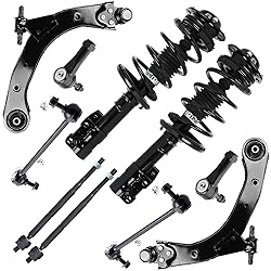 FITMENT: The Kit Fit for Chevy for Cobalt 2005-2010, for Chevy for HHR 2006-2011, for Pontiac for G5 2007-2009, for Pontiac for Pursuit 2005-2006 KIT INCLUDES: 1x 172179L Front Left Complete Struts; 1x 172179R Front Right Complete Struts; 1x K620301 Control Arm and Ball Joint Assembly; 1x K620302 Control Arm and Ball Joint Assembly; 2x K750012 Stabilizer Bar Link Kit; 2x ES800030 Tie Rod End; 2x EV80445 Tie Rod End STABLE OPERATION: Helps improve vehicle handling and stability. Minimize wheel vibration and body roll to ensure comfort, while reducing excessive body movement, enhancing grip and improving body stability OEM KIT: Complete Struts kit can be used directly to replace: 172179L 172179R K620301 K620302 ES800030 EV80445 K750012 COMPLETE PREMIUM KIT: Made of high-quality steel and fine welding design, it has a long service life while minimizing the stress and strain on the suspension springs, bushings and connecting rods, and enhancing the effective braking distance. In addition, the kit contains all the accessories you need, making repairs simple and easy