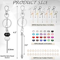 【🎁 Premium Quality & Durable Design】These beadable keychain bars are made of premium alloy material, hard, smooth, and with good luster, hard to deform or fade. We paired it with a swivel snap hook that rotates 360 degrees, so you don't have to worry about getting stuck anywhere. In addition, our bead keychain kit offers colourful beads and letter charms for you to make keychain chains and decorative pendants to decorate your keys, bags, backpacks, or purses. 【🌈 Complete DIY Keychain Supplies Kit】 Get everything you need: 12 beadable keychain bars (6 colors), 72 acrylic beads (24 vibrant colors), 26 A-Z letter charms, and swivel hooks. Perfect for making beaded keychains, bag charms, or backpack accessories. Tip: Use beads with holes >2.5mm for seamless crafting! 【✨ Perfect Size for All Ages】 Kid-friendly & adult-approved! Beaded keychain bars are 2.3” long (6.2” total chain), with 2.5mm bead holes. Ideal for tiny hands and detailed designs. Create keychains for keys, phones, wallets, or gifts – no crafting experience needed! 【🎨 Unleash Creativity for Every Occasion】 Celebrate birthdays, weddings, holidays (Christmas, Valentine’s Day, Halloween), or school events! Design custom keychains with names, initials, or themes. A heartfelt gift for moms, friends, graduates, or craft lovers. 【🧡 Share the Joy of Keychain Making】 Spark family bonding or classroom fun! Non-toxic materials make this kit safe for ages 6+. Perfect for DIY parties, rainy-day activities, or stress-relieving crafts. Includes enough supplies to create 12+ unique keychains!