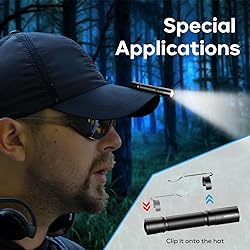 Ultra Bright: This waterproof tiny flashlight made of high quality aluminum alloy which is sturdy and durable, low power consumption, it can light up a concentrated area with a bright and stable beam, making it ideal for working. Mini Size: This flashlight is small and light enough to slip into a pocket, backpack or purse. 3.54in long, weighs 0.7oz, enough for EDC and fits in the palm of your hand. its pocket size makes it great for everyday carry. Convenient: This 1 AAA battery (not included) powered pen flashlight comes with the clip, professional designed with a clip that easily hold on your pocket or hat, this pen light could also be used as cap light for your convenience. Easy to clip to your belt, remove it if you don't need it. 3 Modes: Only featuring 3 useful lighting modes (High / Low / Strobe), No more cycling through endless modes, which effectively reduces the trouble of switching 5 modes. Fully press the switch button to turn on and off, and half press to cycle through lighting modes. Easy to use. Wide Applications: This compact flashlight is widely used in many circumstances. Perfect for working, reading, repairing, camping, emergency and outdoor sports, examples include hiking, running, jogging, biking.