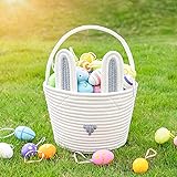 Cute Easter basket has good stability, hand-woven, soft skin-friendly material, no strong smell, durable, empty basket, size 9.8 x 7.8 x 7.8" can hold many small items. Will be good for egg hunt or children's decoration An Adorable Easter gift: Prepare for the annual Easter egg hunt with the adorable Easter Bunny basket. Collect all your eggs and treats in this adorable bunny basket! With their cute faces, these baskets are sure to become a favorite Easter treasure Unique Desgin: Colorful Easter basket with removable velcro ears. The viscosity is very strong, as long as it is aligned and stuck in the right place. Two removable bunny ears lively and vivid, highlighting the ornamental and cuteness of the basket. Easter is the beginning of new life in spring and the bunny is the symbol of Easter. The colorful bunny basket is designed for children's Easter activities. Perfect for holds Easter Eggs, Candies, etc Versatile and classic. Great for sending to loved ones near and far to make them feel extra special. Store collectables, show off decorations and flower arrangements or place around your home as a stylish, practical feature.