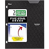 Five Star 2-Pocket Folder, Plastic Folder with Stay-Put Tabs, Fits 3-Ring Binder, Holds 8-1/2" x 11" Paper, Black (333420G-ECM)