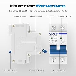 ✔【What You Get】The package includes 1× 2 pole 63A 500V DC circuit breaker, 1×35mm din rial,2×din rial sleeve,2×screw. ✔【High Quality】The shell is made of high quality flame-retardant material, which is sturdy and durable and does not fear sparks, and it adopts all-silver contacts with high conductive efficiency. ✔【Functionality】Offers protection for distribution facilities, preventing damage from overload and short circuits. Additionally, it serves as a means of control and isolation. ✔【Arc Extinguishing Function】Extinguishing DC arcs poses a greater challenge compared to AC arcs. This DC miniature circuit breaker incorporates a magnetic system to enhance the efficiency of arc extinguishing, ensuring improved safety and reliability. ✔【Wide Range of Applications】Widely utilized in DC power systems, marine power systems, solar PV systems, and various other DC applications, demonstrating its versatility in multiple industries.