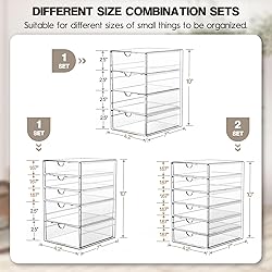 🖇Ample Desk Organizer: Our set of 21 clear acrylic drawers provides you with organized storage space for all your office supplies. Say goodbye to messy desks and hello to a clutter-free workspace! ✏️Multi-Purpose: Not only are these drawers great for office supplies, but they can also be used for storing makeup, crafts, and other small items. The stackable feature allows for even more space-saving storage options. Also suitable for delicate ladies to organize cosmetics, suitable for makeup brushes, eye shadow, blush, powder, eyebrow pencil, mascara, etc. 📌Easy to Find: The clear acrylic drawers make it easy to see the contents inside, so you can quickly locate the items you need. No more wasting time searching through cluttered drawers! 💄Versatile Organizer: Whether it's pens, paperclips, or sticky notes, our acrylic drawer organizers are the perfect solution for keeping all your office supplies in one place. Get your workspace organized and maximize productivity with our convenient storage bins. 💅Versatile Organizer: Whether it's pens, paperclips, or sticky notes, our acrylic drawer organizers are the perfect solution for keeping all your office supplies in one place. Get your workspace organized and maximize productivity with our convenient storage bins.