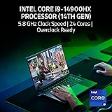 FAST 16” OLED QHD+ 240Hz DISPLAY — Truly designed for the competitive gamer with 0.2 ms response time, featuring a VESA ClearMR 11000 rating and DisplayHDR 500 certified to ensure minimal blurring and vivid colors (1M:1 contrast ration and 100% DCI-P3) NVIDIA GEFORCE RTX 40 SERIES GRAPHICS — Packed for pure performance with 1.50 gPD (Graphics Power Density) and delivers up to 30% more graphic power per cubic inch than any other 16” gaming laptop INTEL CORE I9-14900HX PROCESSOR — Featuring 24 cores and 5.8 GHz max clock speed, game and create flawlessly with the most powerful mobile processor leveraging desktop-grade silicon — push performance even further with Overclock Mode in Razer Synapse VAPOR CHAMBER COOLING SYSTEM — Enjoy optimal thermal performance with a unique single-piece vapor chamber design, featuring 0.5 mm exhaust fins and special NASBIS insulating sheets that cool keyboard temperatures by up to 12% LIGHT & DURABLE ANODIZED ALUMINUM UNIBODY — CNC-milled from a single block of aircraft-grade aluminum for optimal strength-to-weight ratio and is anodized with a matte black finish for a smooth, scratch-resistant surface