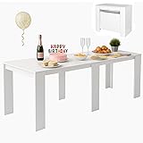 【Extendable Design & Space Saving】 Our rectangular extendable dining table expands from a compact 20” console to an impressive 118” long table with 5 extension leaves (≈19.7” each), seating up to 12 people. Perfect for family gatherings, dinner parties, or holiday celebrations. All leaves can be conveniently stored under the tabletop to save space when not in use. 【Rustic & Stylish Look】 Featuring a warm wood grain finish with a clean industrial style, this extendable table adds a distinctive touch to your kitchen, dining room, or living area. The versatile design allows you to use it as a slim console when space is tight, then expand it into a full dining table when needed. Elegant Design: The Expandable Dining Table features an avant-garde style and wood grain finished solid construction that adds a touch of elegance to any decor. The sleek and modern design is perfect for those who want to add a touch of sophistication to their dining area. 【Sturdy & Durable Quality】 Built from high-quality MDF with a scratch- and stain-resistant laminate surface, this table is steady, reliable, and made to withstand everyday use while maintaining its elegant appearance for years. 【Multi-Purpose Use】 More than just a dining table—this flexible piece also works as a console table, conference table, executive desk, office computer desk, or craft table. Adapt it to fit your lifestyle, whether for work, dining, or entertaining. 【Easy Assembly & Reliable Service】 All hardware, tools, and step-by-step instructions are included for a quick installation in about 40 minutes. Enjoy hassle-free setup and responsive customer service whenever you need support.