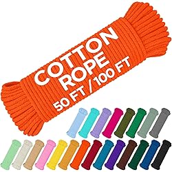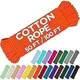 COTTON ROPE: Color: Orange. Length: 100 feet. Width: 3/16 inch (5 mm). Quick-drying. All-purpose. Made from natural cotton with synthetic core. * Please note: the rope is not suitable to be used for wicks. HIGH QUALITY: Cotton rope is well-known for its exceptional properties. Premium materials used to manufacture our rope make it soft to touch and easy to work with as well as durable and resistant to damage. UV and fade resistant. STRONG & DURABLE: Our cotton cord has minimal-to-no stretching and is capable to withstand a weight of 220 lbs (100kg). Its braided structure ensures that the load-bearing capacity is evenly distributed across the entire rope, which makes it suitable for a wide range of applications. Long-lasting. ALL-PURPOSE: Great for all kinds of Outdoor and Indoor Applications: from camping and boating to household and general use. IDEAL CRAFT ROPE: This flexible cotton string is perfect for crafting & DIY projects like making pet toys, basketball nets, lines for events’ decor and baby shower, macrame projects and revamping home decor. Can be used as a pinata rope for holidays. MUST-HAVE: General Application Rope is widely used for tying down equipment, weaving hammocks, as window sash cord, clothes line cord, moving rope, laundry line, flagline rope, etc. The thin cotton rope is essential for every home. Always have it on hand in your car, garage, garden or home.
