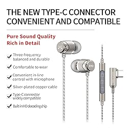 🎧Superb Sound: Providing refined and accurate sound from redesigned 10mm dynamic drivers, SoundMAGIC E11D earphone delivers a balanced sound image with extended transparent detail and warm, textured bass. 🎧Elegant Aluminium Housing: Completely crafted from aluminum in a high-precision cutting process and finished with a unique hand painting process, the lightweight and robust housing of the E11D earbud displays a delicate texture with refined and elegant appearance. 🎧Powerful DAC Chip For High-res Audio: E11D USB-C headphones built-in high-quality DAC chip, that reduces the loss in sound transfer. Delivers premium sound with fine-tuned acoustics that balance strong bass, soaring highs, and clear mids, bringing you the perfect music enjoyment. 🎧Precision Cable With Fully Featured Remote And Mic: The type-c earbuds headphone features a tangle-resistant copper cable to deliver the best possible signal, ensuring no loss of quality as the signal is converted to high resolution sound.3-button remote control, easy to control music and calls. The built-in high quality microphone allows you to answer hands-free calls and end calls during exercise and travel. 🎧Upgraded Materials: E11D Gun earphone cable materials have been greatly improved from the Black earphones. Anti-aging materials are used to ensure a long service life, and they will not be knotted or tangled at all. More comfortable and convenient to use. 🎧Comfortable In-Ear Fit And Good Noise Isolation: The E11D Type C in-ear headphones combine ergonomically angled sound tubes with an in-ear fit that seals the ear canal totally with soft silicone eartips to provide a secure fit that not only isolates outside noise really well but ensures you hear their full sonic spectrum – and then you’re treated to a well-balanced, entertaining, energetic sound. 🎧Exclusive Warranty Service: SoundMAGIC Brand provides a 1-YEAR NO-WORRY WARRANTY for every purchase order. Please feel free to email us(Click "SoundMAGIC Brand" behind the "Sold by" under the Buy Box) via Amazon and we will reply to you within 24 hours. We will always do our best for every customer.