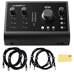 - Introducing iD24, the audio interface made for producers and engineers. Featuring two Audient Console Mic Preamps, class-leading converters, and an intuitive layout, the iD24 effortlessly combines astonishing audio performance with ease of use. Add to that professional must-have features like balanced inserts, ADAT expandability, and customizable monitor control, and iD24 makes getting studio-quality results easier than ever. Every iD interface features the Audient Console Mic Preamp, the same discrete circuit design found in our renowned recording console, the ASP8024-HE. Designed to deliver ultra-low noise and low distortion with a touch of classic analog warmth, iD24’s two Audient Console Mic Preamps deliver a clean, accurate, and true to source translation of your audio. Computer Connectivity: USB 3.0 Form Factor: Portable Simultaneous I/O: 10 x 6 Number of Preamps: 2 x mic Phantom Power: Yes A/D Resolution: 24-bit/96kHz Analog Inputs: 2 x XLR-1/4" combo (mic/line), 1 x 1/4" (JFET) Analog Outputs: 4 x 1/4" TRS Digital Inputs: 1 x Optical (ADAT/SPDIF) Digital Outputs: 1 x Optical (ADAT/SPDIF) Inserts: 2 x 1/4" TRS (send), 2 x 1/4" TRS (return) Headphones: 1 x 1/4", 1 x 1/8" USB: 1 x USB-C Clock I/O: 1 x Word Clock Software: Audient iD Mixer OS Requirements - Mac: macOS 10.13 or later OS Requirements - PC: Windows 10 or later Power Supply: USB bus powered Adding value to your purchase, Austin Bazaar bundles your instrument with necessary accessories. Save yourself the hassle and save some money while you're at it. This bundle includes two instrument cables so you have extra. Two XLR cables are included so you can plug them in right away and start playing. An Austin Bazaar polishing cloth is included so you can keep your new instrument in mint condition. Everything you need to start playing immediately comes in one box.