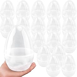 【Jumbo Size】These jumbo easter egg size is 20 ×13cm/ 8×5 inch, their jumbo size ensures that you have plenty of space to fill them with treats, toys, or surprises, adding an extra element of excitement to your easter party. 【 White Transparent Plastic Eggs】: The fillable easter eggs are made from high-quality white transparent plastic, combining a classic and elegant look with durability. The transparent design allows you to see the surprises inside the eggs, making them even more funny for children and aduts. 【Easy to Fillable】: These white plastic easter eggs are designed to be easily filled with treats or surprises. Fill them with candies, chocolates, small toys, you also can decorate your easter eggs with beautiful stickers, designs, or paint something to create a delightful easter experience for kids. 【Widely Applications】These jumbo easter eggs are perfect for various easter-themed activities and decorations. Whether you're organizing an easter egg hunt, setting up an easter display, or creating party favors, these easter eggs will add a fun and contribute atomosphere for party. 【Package Includes】: This set includes 18 jumbo easter eggs, providing you with an ample quantity to use for easter celebrations and activities. With this pack, you'll have enough easter eggs to create an exciting and memorable easter egg hunt or decorate your easter theme party.