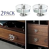 JEREVER 2 Pack Acrylic Knobs Large Size Crystal Brass Drawer Pull Clear Cabinet Handle Furniture Hardware for Wardrobe Dresser Kitchen (Silver_Round)